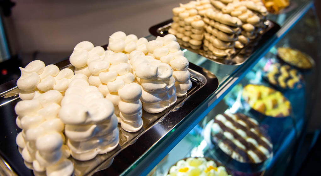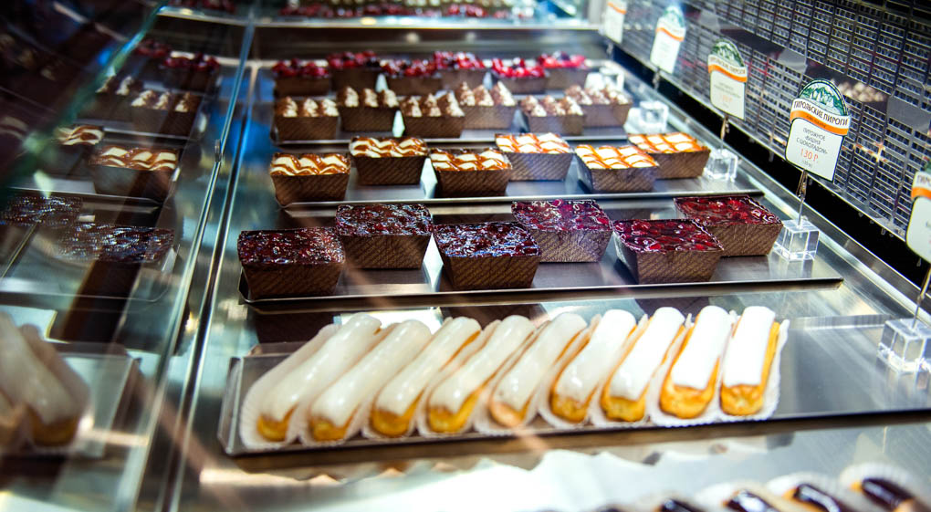 Большое разнообразие фирменных пирогов, свежая выпечка, вкуснейшие пирожные и десерты, которые можно взять с собой